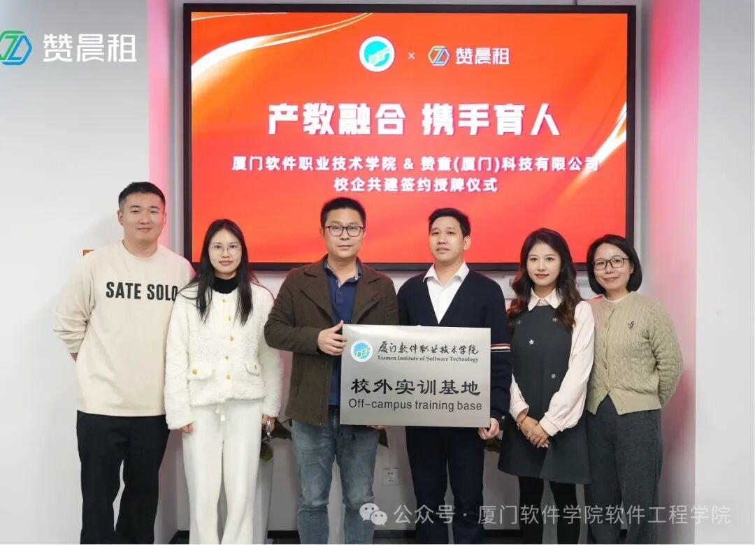 2025年1月3日下午,为进一步加强校企合作,拓宽学生就业渠道,提升人才培养质量,厦门软件职业技术学院软件工程学院副院长张舜尧、学工处就业科科长卢秀娟以及软件工程学院辅导员吴婉莹等一行走访了赞童(厦门)科技有限公司,就双方合作事宜进行了深入会谈并举行了校外实习基地授牌仪式。