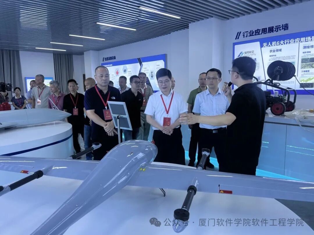 视察组还参观了基地室外训练场、低空经济展厅等,详细了解了基地建设情况。合作共建企业厦门福翔航空技术有限公司董事长王丁峰表示将与学校持续深入合作,共同推动我市低空经济发展。公司总经理王立平详细介绍了无人机技术应用场景,并剖析了未来低空经济发展趋势。