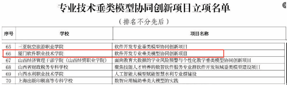 近日,工业和信息化部教育与考试中心正式发布了《关于公布专业技术垂类模型协同创新项目立项名单的通知》。经自主申报、形式审查、专家评审等环节,全国共有100个项目入选专业技术垂类模型协同创新项目立项名单。我校申报的《软件开发专业垂类模型协同创新项目》凭借扎实的建设基础、清晰的实施路径和突出的产教融合特色获批立项。这一成果标志着我校在人工智能与软件技术深度融合、职业教育数字化转型等方面取得了重要突破,也为学校进一步深化教育教学改革、服务区域数字经济发展注入了强劲动力。